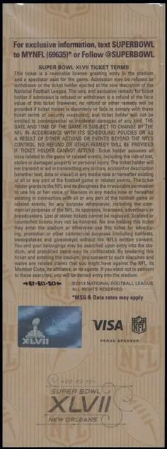 Full Unused Super Bowl Ticket - $950 Plaza Blue Variation